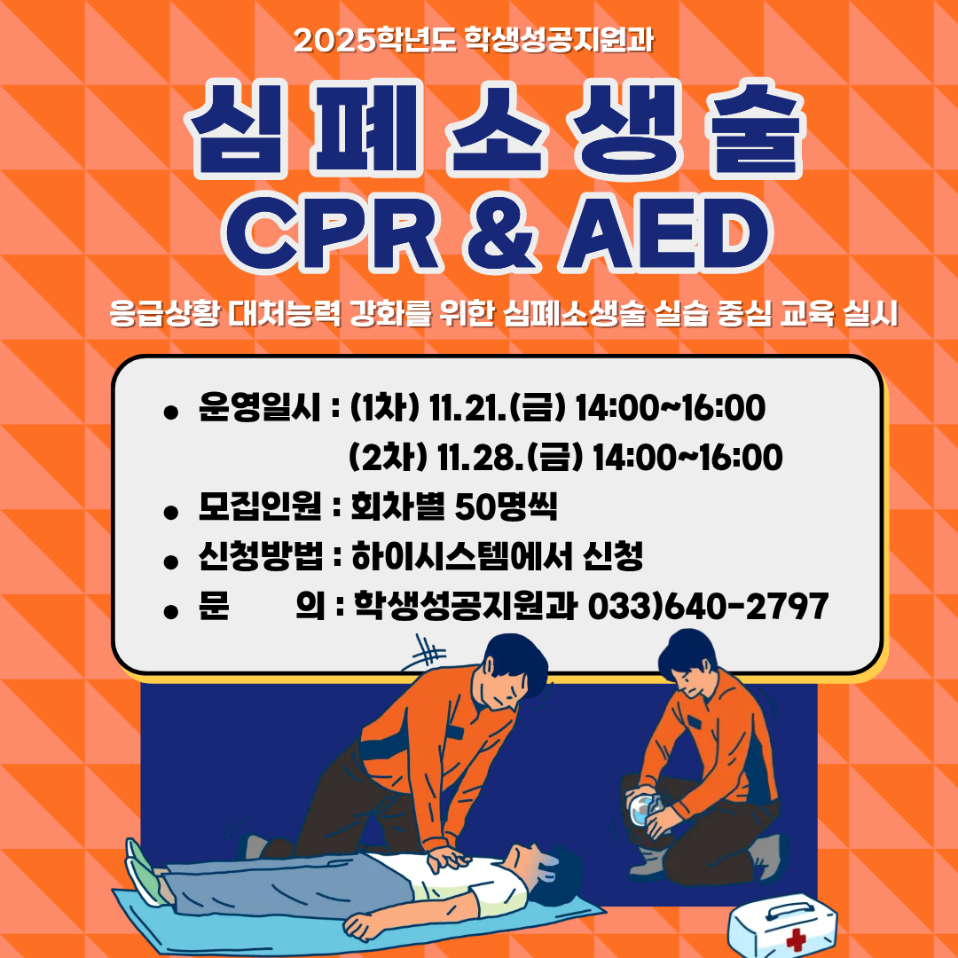 [강릉] [학생성공지원과] 응급처치과정 심폐소생술 CPR&AED 실습 교육 학생 모집
