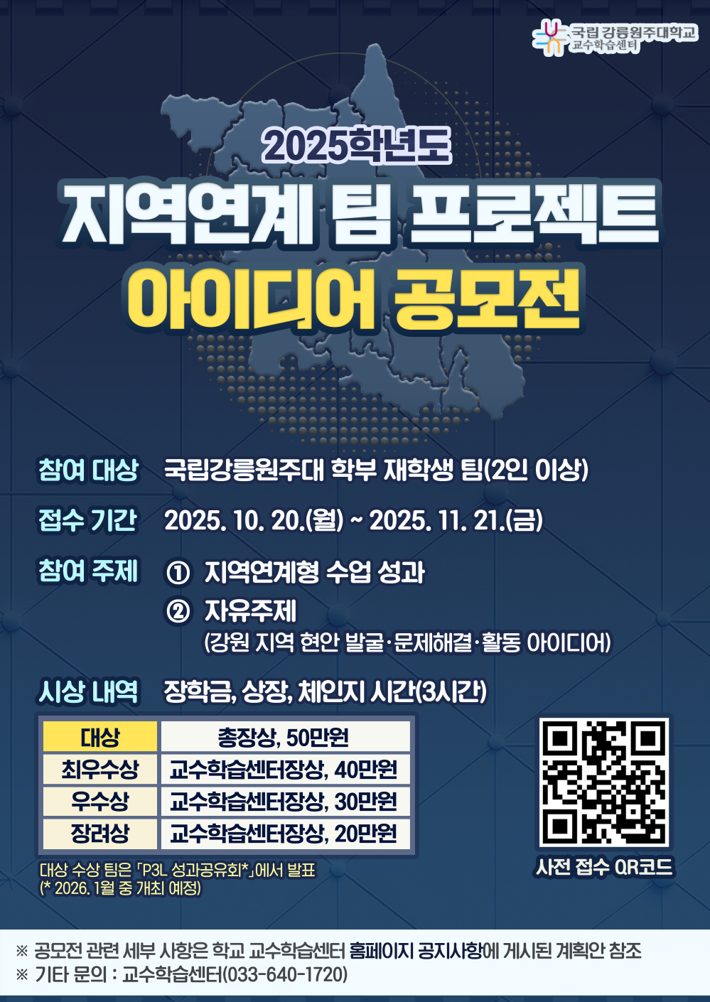[교수학습센터] 「2025학년도 지역 문제 기반 팀 프로젝트 아이디어 공모전」 개최 안내