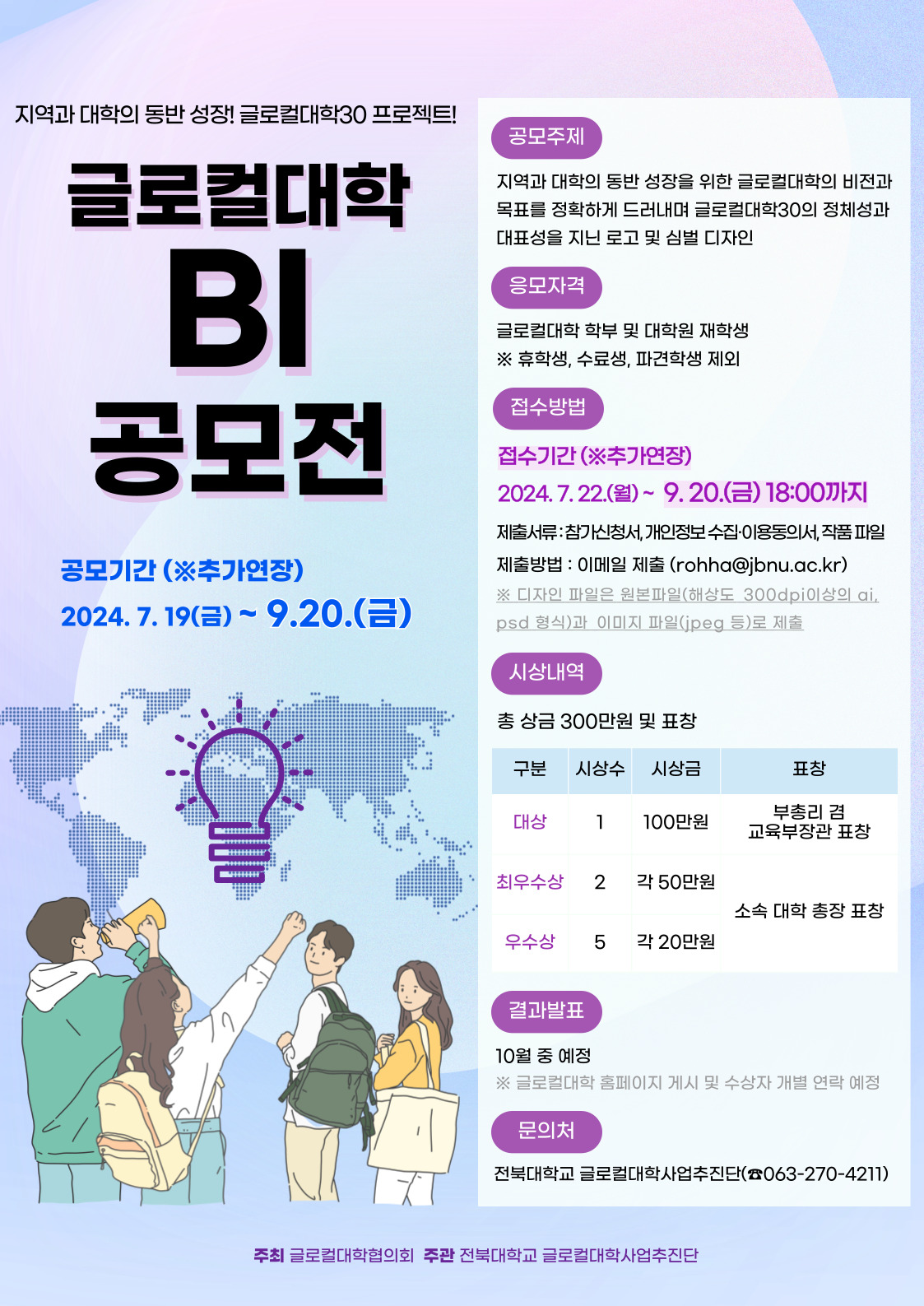 '지역과 대학의 동반성장'이라는 글로컬대학사업의 비전을 실현할 BI를 공모합니다.