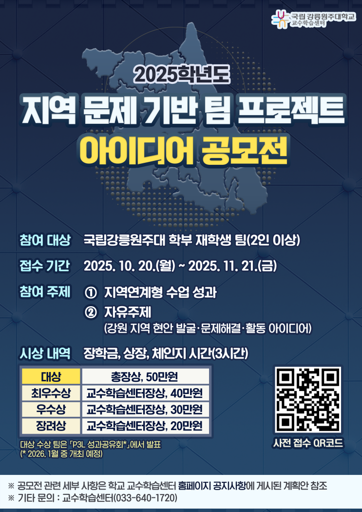 [교수학습센터] 「2025학년도 지역 문제 기반 팀 프로젝트 아이디어 공모전」 개최 안내