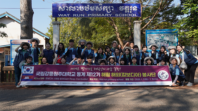 2007년 사회봉사센터 설립 이후, 국립강릉원주대학교는 몽골, 캄보디아, 우즈베키스탄, 베트남, 네팔 등지로 900여 명의 봉사 단원을 파견하며 글로벌 나눔을 실천을 이어왔다.